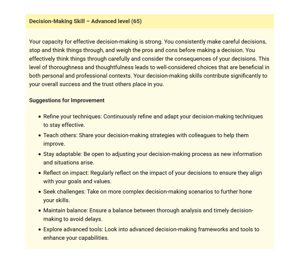 When your clients complete the BESSI using our online platform, it generates a clearly designed, personalized feedback report to review with them in your private sessions.
